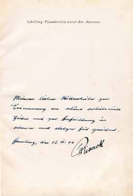 Inhalt: Exemplar mit persönlicher Widmung des Verfassers von 1937 und weiterer Widmung für einen Firmenmitarbeiter von 1940.