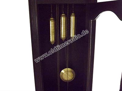Die Uhr hat ein Westmister-Schlagwerk, ein Sekundenpendel und drei Gewichte. Die Laufzeit liegt bei einer Woche.