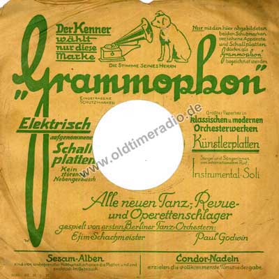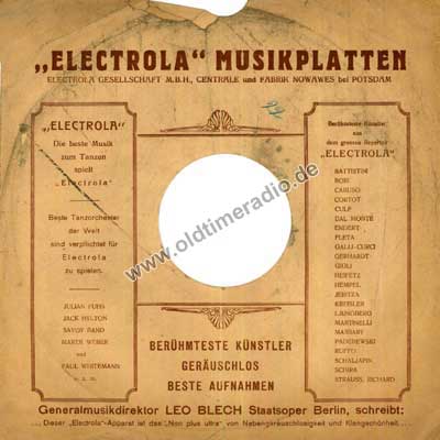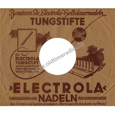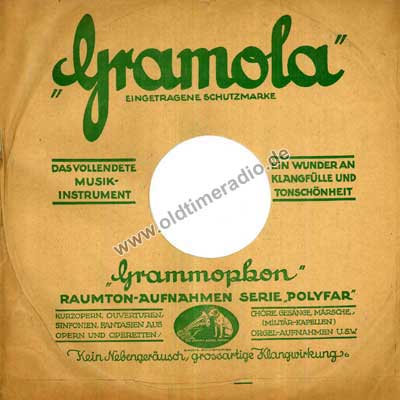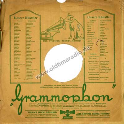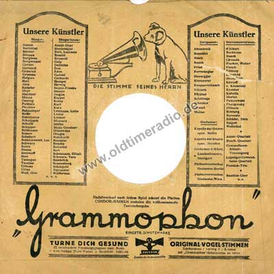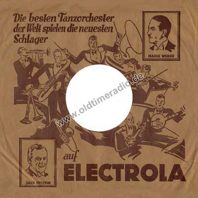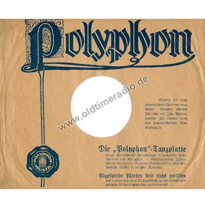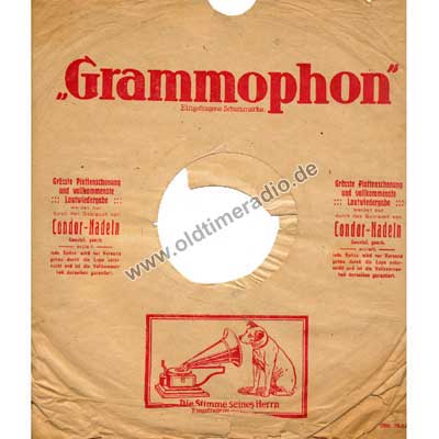 Bedruckte Schutzhüllen für Schellack-Schallplatten unterschiedlicher Marken und Größen: 5 ... 12" (125 ... 300 mm)