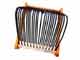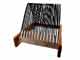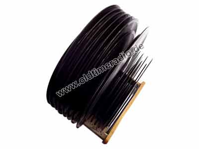 Dieser Schallplattenständer ordnet die Schallplatten, nicht wie üblich in einer Reihe, sondern in wechselnder Folge. Dadurch können die Platten besser gegriffen werden. Aufschrift: Ges. gesch., Marma.