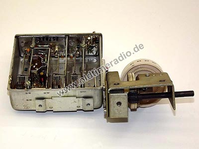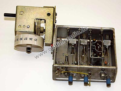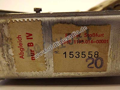 Eingang 75 Ω unsymmetrisch. Dieser Tuner wurde im Fernseher "Stella 1102 U" verwendet. Er trägt einen zusätzlichen Aufkleber: "Abgleich nur B. IV".