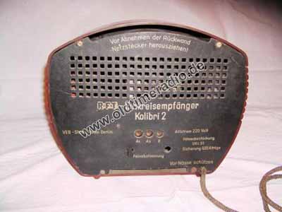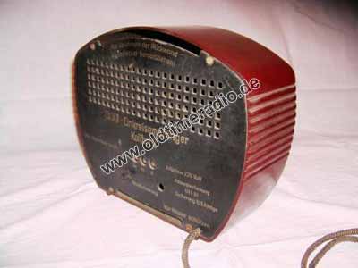 Rückkopplung kapazitiv, Feinabstimmung nur bei Antennenwechsel von der Rückwand aus zu bedienen, fest eingestellt auf 2 Sender: Berlin 1 und 2. Die Senderumstellung erfolgt durch einen Schiebeschalter, der eingestellte Sender ist auf der Beschriftung zu sehen.