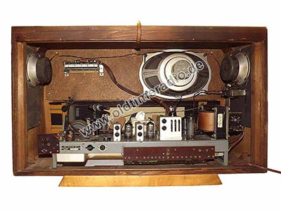 Das Chassis trägt die Bezeichnung "Typ 1132". Ein 2. Ausgangsübertrager für die Hochtonlautsprecher sitzt außerhalb dieses Chassis unter der rechten HT-LS (von hinten gesehen).