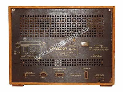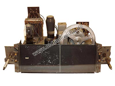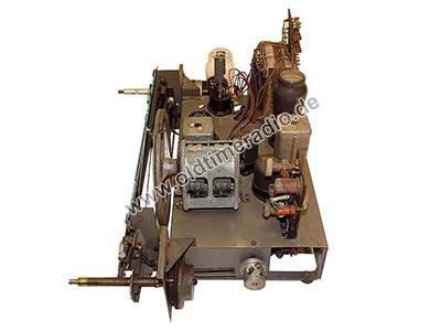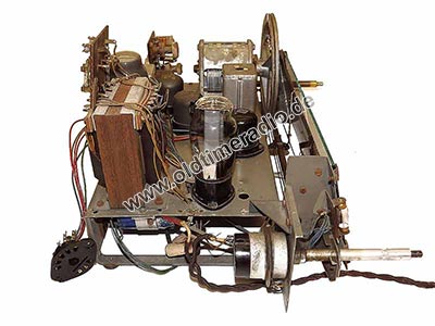 Neben einer Lautstärke- und Klangregelung besitzt dieses Radio einen interessanten Antrieb des Drehkondensators zur Senderabstimmung. Damit ist sowohl eine mechanische Grob- als auch eine Senderfeinabstimmung möglich.