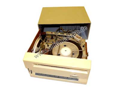 Reiseempfänger als Kombination aus Plattenautomat B 40 von Funkwerk Zittau und Empfänger vom Stern-Radio Rochlitz.