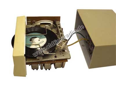 Mit dem Gerät können 17-cm-Schallplatten mit einer Geschwindigkeit von 45 U/min. abgespielt werden.
