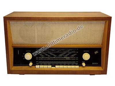 Es handelt sich um einen "Oberon" im "neuen" Gehäuse, von "radio und fernsehen" als "Standard-Oberon" bezeichnet. Das Gerät hat 11 Tasten, davon 4 Klangregister, und eine drehbare Ferritantenne.