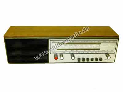 Heimempfänger mit Tonblende, Ferritantenne für AM, Hilfsantenne für FM, Anschlüsse für Aussenantenne, TA/TB und Zusatzlautsprecher, automatische AFC. Gerät wurde baugleich auch bei Robotron Zella-Mehlis hergestellt.