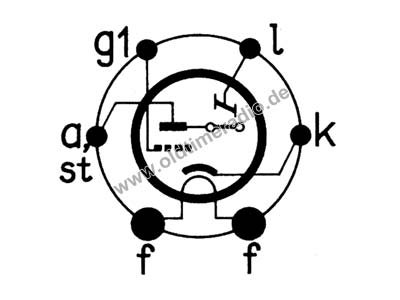 Spannungsversorgung: Uf: 6,3 V, If: 0,3 A, indirekt