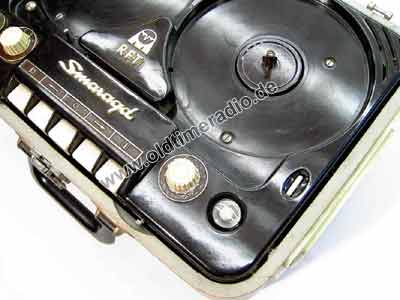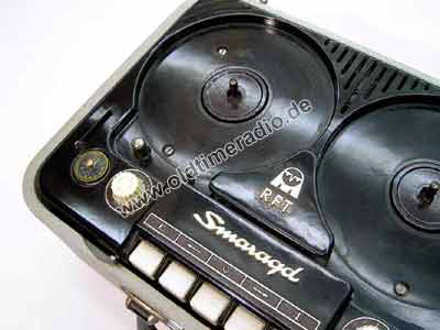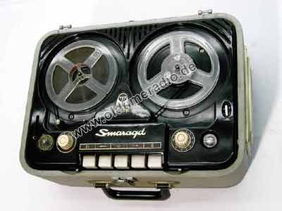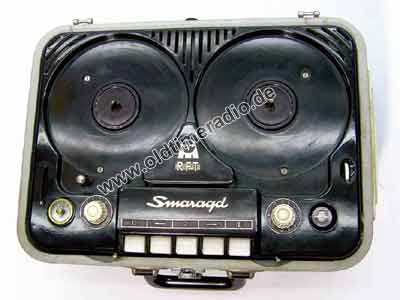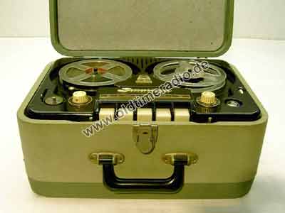 Doppelspurgerät, umschaltbar 19,05/9,53 cm/s mit 60-15.000/60-10.000 Hz. 18 cm Spulen, Bandzähluhr, Tonblende, Tricktaste (Löschunterdrückung). Koffer aus Sperrholz mit Kunstleder überzogen. Bakelit-Abdeckung.