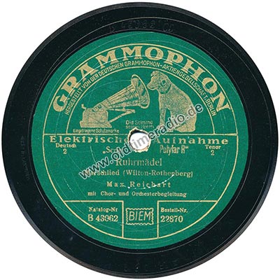 Weitere Bemerkungen auf Etikett (außer Titel): Die Stimme seines Herrn, eingetragene Schutzmarke, Elektrische Aufnahme, 2, Deutsch, Tenor, BIEM