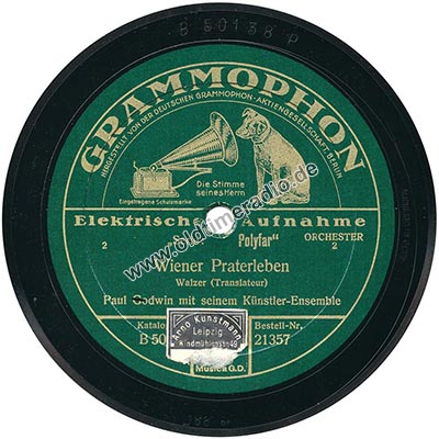 Weitere Bemerkungen auf Etikett (außer Titel): Die Stimme seines Herrn, eingetragene Schutzmarke, ORCHESTER, 2, Ammre-Mke. Nur gültig in Deutschland R.-G. 22.5.10, MUSICA G.D.