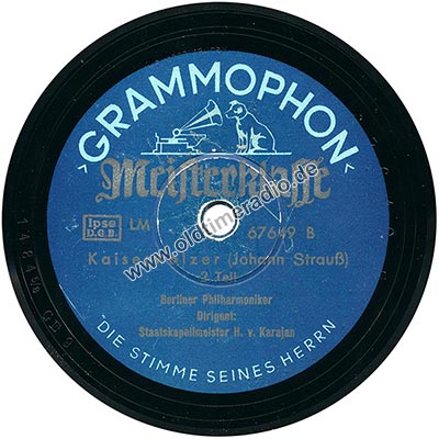 Weitere Bemerkungen auf Etikett (außer Titel): Die Stimme seines Herrn, LM, Ipse D.G.B. (in Rechteck eingerahmt)