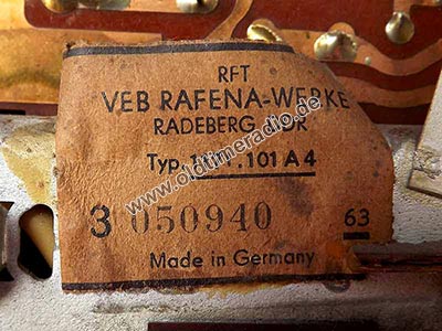 Hersteller: VEB Rafena-Werke "Fernseh- und Nachrichtentechnik Radeberg"