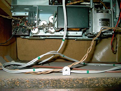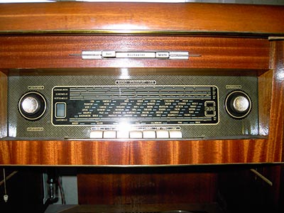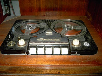Der Fernseh-Musikschrank ist ausgerüstet mit einem s/w-Fernseher "Iris 17 B", einem Radio "Stassfurt 8 E 156-I" und dem Tonbandgerät "BG 20/5 Smaragd" welches durch eine Schrankbeleuchtung besser zu bedienen ist. Das Tonbandgerät hat keine eigene Endstufe. Es ist an den Tonabnehmeranschluss des Radios angeschlossen, sowohl für Aufnahme- als auch für Wiedergabezwecke.