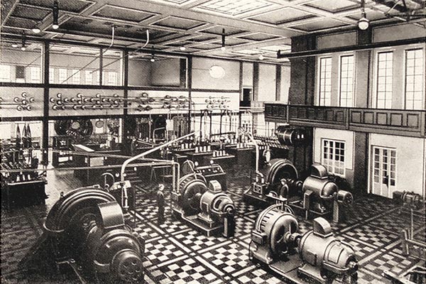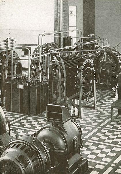 Vor 1937 sah der Hauptsendesaal folgendermaßen aus: Dort stand der Langwellensender mit einem Energieaufwand von 400 kW. Im Vordergrund der Maschinensatz.
