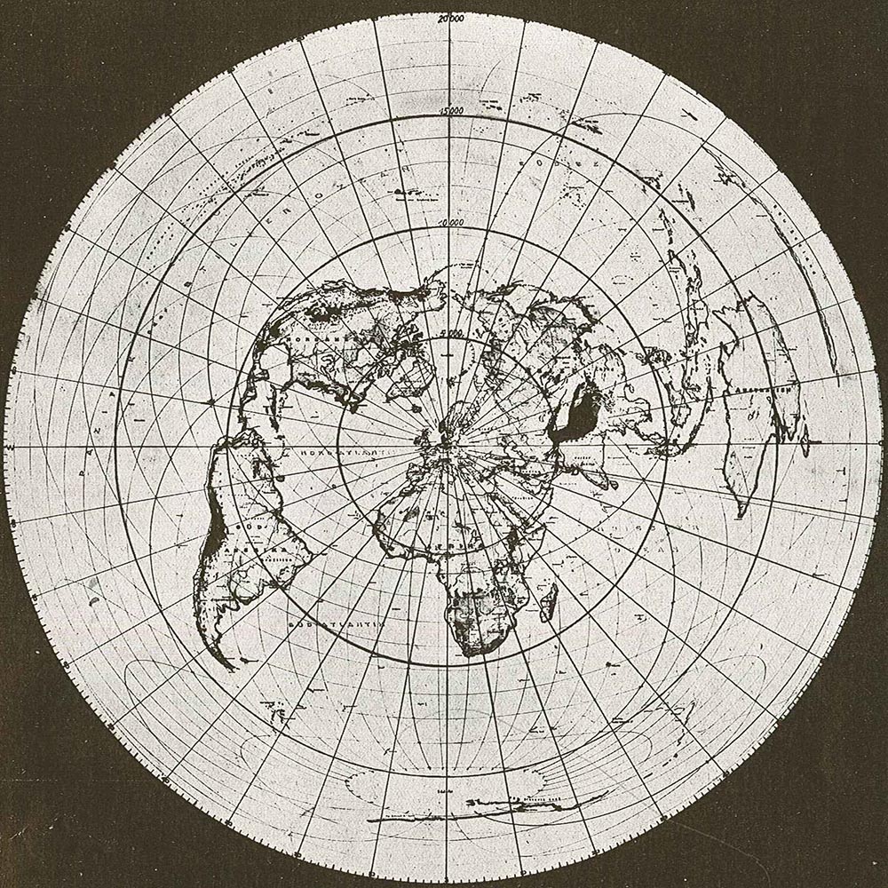 Aus dem Jahr 1937 stammt eine Karte in der Nauen als der Mittelpunkt der Welt dargestellt wurde: