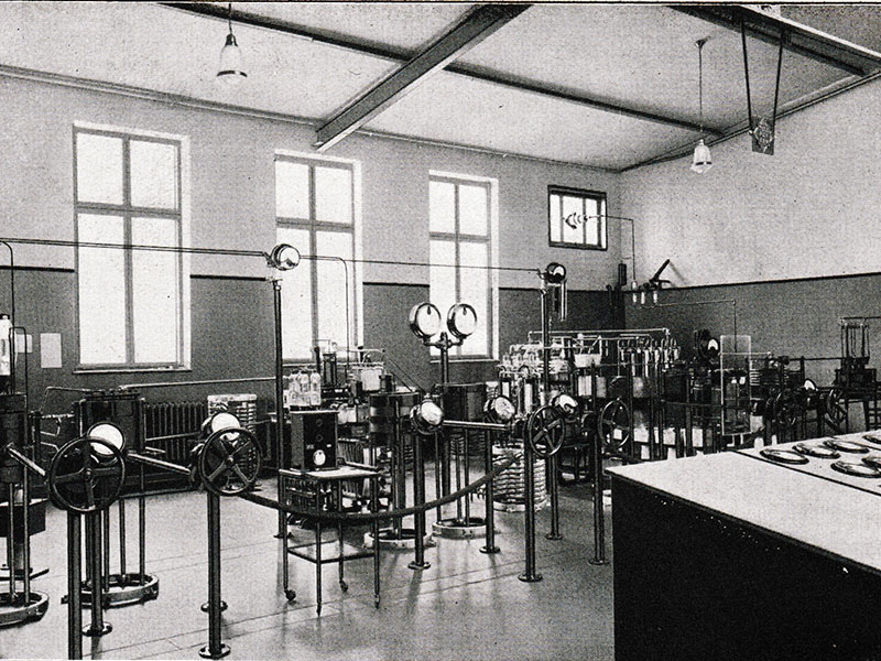 Zur Konstanthaltung der Spannung diente ein in die Primärleitung geschalteter Drehtransformator und zur stufenweisen Einschaltung der Heizung ein Stufenwiderstand.