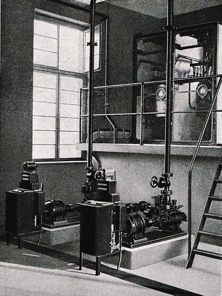 Für den Betrieb des Senders waren verschiedene Umformer erforderlich und zwar ein 220-V-Gleichstromgenerator für die Erregung der übrigen Umformer und Speisung der Hilfskreise, eine Gleichstromheizmaschine für die Röhren der Sendestufen I und II, ein Mittelfrequenzgenerator für die Heizung der Modulationsröhren und ein 750-V-Hochspannungsgenerator für die Gittervorspannung der Röhren in der Sendestufe III. Für alle Maschinen und Transformatoren waren Reserveeinheiten vorhanden.