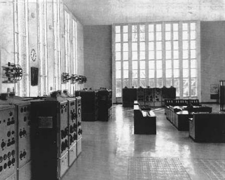 Der große Sendesaal im Haus 5 mit den Telefunken-Olympiasendern