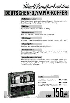 Die offizielle Bezeichnung für das Gerät war "Olympia Kofferempfänger". Mit diesem Gerät sollte der Rundfunkempfang während der Olympiade 1936 auch außerhalb der Wohnung sichergestellt werden.