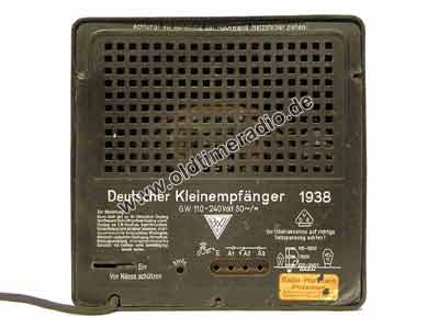 Vorstellung auf der "15. Großen Deutschen Funk-Ausstellung in Berlin" am 05.08.1938. Bis Oktober 1938 wurden bereits über 220.000 Stück produziert.