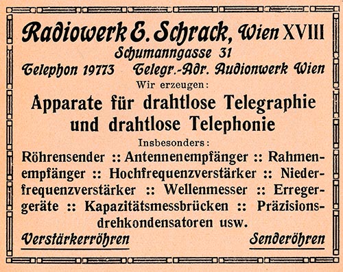 1918 - 1929 - Radiowerk E. Schrack