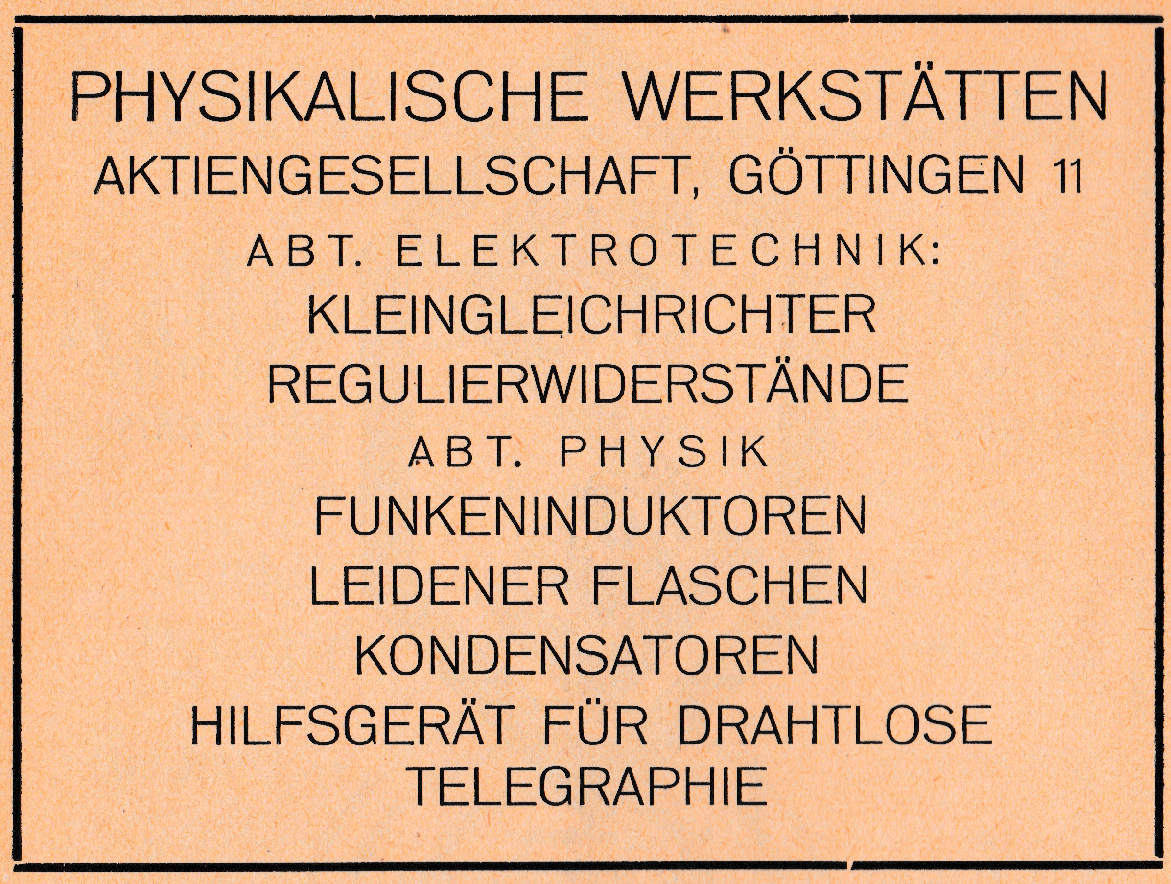 ? - ? - Physikalische Werkstätten AG, Göttingen