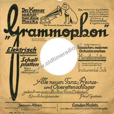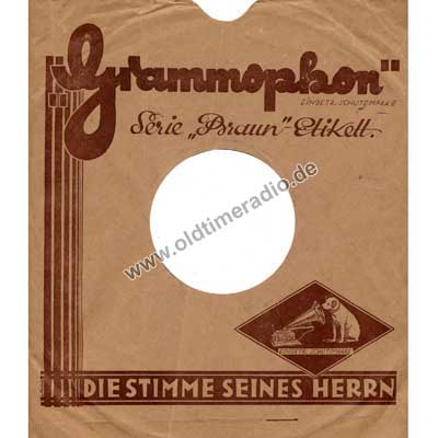 Bedruckte Schutzhüllen für Schellack-Schallplatten unterschiedlicher Marken und Größen: 5 ... 12" (125 ... 300 mm)