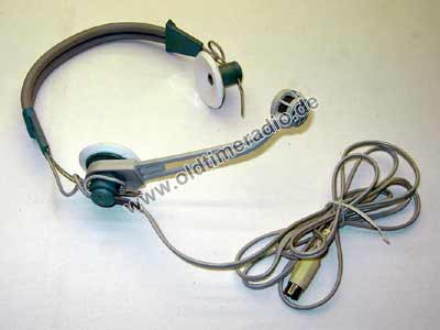 Dynamischer Mono-Kopfhörer, 90 mW, 200 Ω Scheinwiderstand (400 Ω je System), 20 ... 15000 Hz. Beide Systeme sind parrallel geschalten. Die Schallwandler tragen den Schriftzug "Stein".