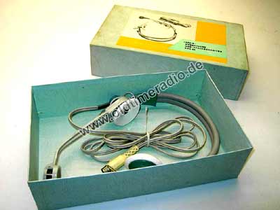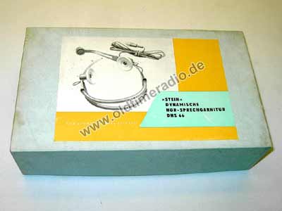 Mikrofon 200 Ohm, 200...15000 Hz, nierenförmig für Nahbesprechung. Anschluss gemeinsam über 5-pol. Diodenstecker. Die Schallwandler tragen den Schriftzug "Stein".