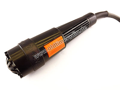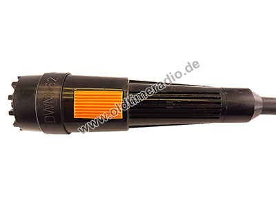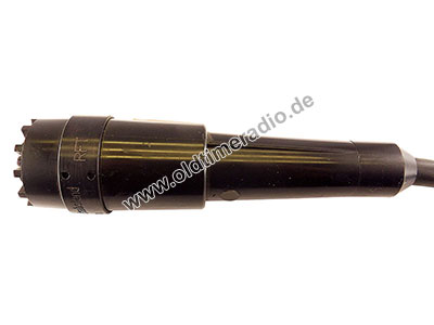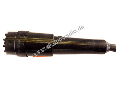 Wasserdichtes dynamisches Handmikrofon, niederohmig, kugelförmige Richtcharakteristik, 100 - 12.000 Hz, mit Schalter für nachfolgenden Verstärker, 5-poliges Anschlusskabel (ohne Stecker, die Konfektionierung erfolgte durch den Kunden). Speziell entwickelt für die Schifffahrt (Sprachübertragung). Selbst kurzzeitige Überflutung mit Salzwasser hat die Funktion dieses Mikrofones nicht beeinträchtigt. Das Anschlusskabel hat eine Länge von 8 m, kann jedoch bedenkenlos auf über 100 m verlängert werden. Die Impedanz liegt bei 100 Ω, der Nennabschluss bei 1 kΩ.