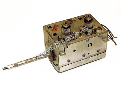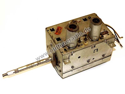 Trommelkanalwähler mit VHF-Tuner. Er gehört zu einer Standard-Typenfamilie und kam bereits im "Sachsenwerk Radeberg" zum Einsatz. Je nach Fernsehertyp konnten die einzelne Segmentsätze umbestückt werden. Diese waren neben der Kanalnummer farbig gekennzeichnet. So war wahlweise Empfang nach OIR (grün), CCIR (weiß) und UKW problemlos möglich. Dieser Kanalwähler trägt weiße Segmentsätze.