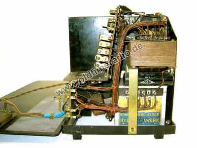 Anstelle von Drähten wurde viele Kupferschienen verwendet, das erinnert schon etwas an eine gedruckte Schaltung (Baujahr 1930!!!)