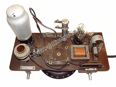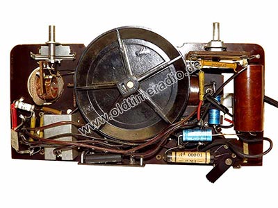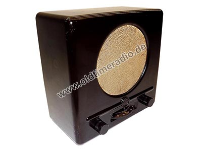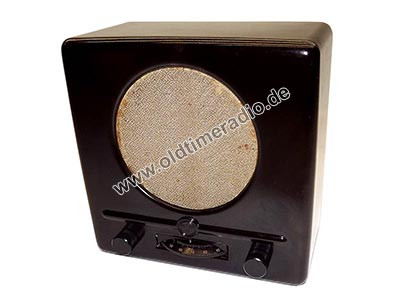Da die Fertigung unter deutscher Besetzung nur während des Krieges stattfand, wurden nur "Sparmodelle" gebaut. Hier mit Drossel, jedoch ohne Gittervorspannungsregler. Der Lautsprecher hat Befestigungsohren.