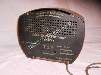 Rückkopplung kapazitiv, Feinabstimmung nur bei Antennenwechsel von der Rückwand aus zu bedienen, fest eingestellt auf 2 Sender: Berlin 1 und 2. Die Senderumstellung erfolgt durch einen Schiebeschalter, der eingestellte Sender ist auf der Beschriftung zu sehen.