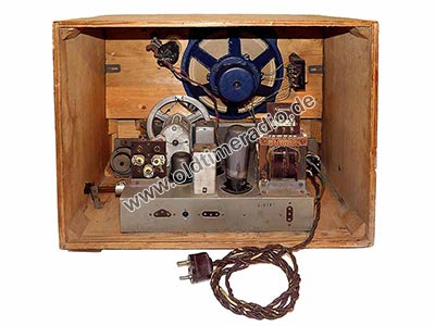 Neben einer Lautstärke- und Klangregelung besitzt dieses Radio einen interessanten Antrieb des Drehkondensators zur Senderabstimmung. Damit ist sowohl eine mechanische Grob- als auch eine Senderfeinabstimmung möglich.