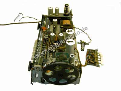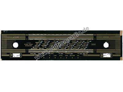 5-Tasten Klangregister, UKW Ferntaste. In diesem Gerätetyp ist (im Gegensatz zu den meisten anderen Radios) die EM 80 "richtig" herum, also stehend mit den Stiften nach unten, eingebaut.