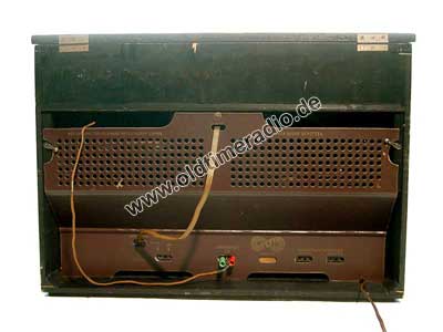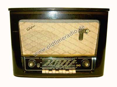 Erste produzierte Tefi - Radio - Kombination. Rundfunkempfänger (Chassis T 5521, Ger.Nr. 14011, Firma AJA) mit Schallbandspieler HS-19. Obwohl der Schallbandspieler fest im Gerät eingebaut ist wird er an der Rückwand mittels Kabel an der Heimsender (TA)-Buchse angeschlossen. Damit besteht die Möglichkeit zwischen diesem Gerät und einem externen Abspielgerät (z.B. Plattenspieler) zu wechseln.