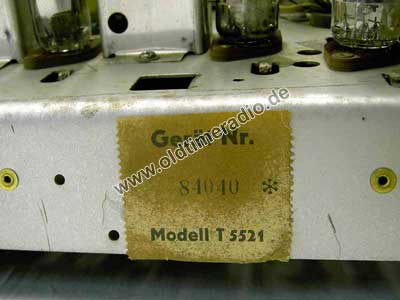 Lt. RMorg handelt es sich bei diesem Gerät um den Typ "M 540". Dieses Gerät trägt jedoch nur die Typenbezeichnung "T 5521", also die Bezeichnung des Chassis mit eigener Gerätenummer.