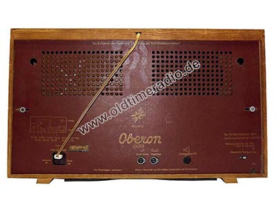 Es handelt sich um einen "Oberon" im "neuen" Gehäuse, von "radio und fernsehen" als "Standard-Oberon" bezeichnet. Das Gerät hat 11 Tasten, davon 4 Klangregister, und eine drehbare Ferritantenne.
