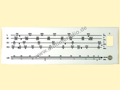 Wellenbereiche: LW (145 ... 410 kHz), MW (515 ... 1625 kHz), KW 1 (5,9 ... 7,5 MHz), KW 2 (7,4 ... 22 MHz), UKW (87,5 ...104 MHz)