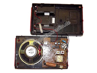 Taschenradio für den ausschließlichen Empfang des Langwellensenders "RAIOROPA 261". Einzige Bedienelemente sind eine Frequenzfeinabstimmung und der E/A-Schalter/Lautstärkeregler.