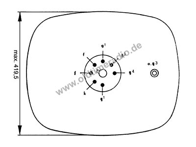 Nutzbare Schirmabmessung: 484 x 382,5 mm. Die Röhre wird statisch fokussiert und magnetisch abgelenkt (Buchstabe "G" = gemischt).