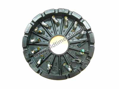 Fassung für Oszillografenröhren (z.B. B 7 S 4 und D 13-27 GH), 14 Stifte. Philips Type 55566.