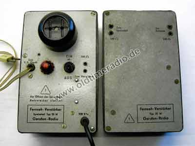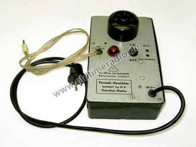 Eingang Antenne 240 Ω von Fernsehverstärker 20 W, hierüber dessen Spannungsversorgung mit 32 V~, Ausgang Fernsehgerät, L/C-Entkopplung von Speisespannung und HF-Signal. Das Gerät besitzt weiterhin eine geschaltene 220 V Steckdose für den Anschluss des Fernsehgerätes.