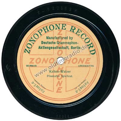 Bemerkungen zu Erscheinungsjahr: Die "Deutsche Grammophon" hat "Zonophon"-Schallplatten nur 1918 hergestellt, danach Aufgabe der Marke "Zonophon".