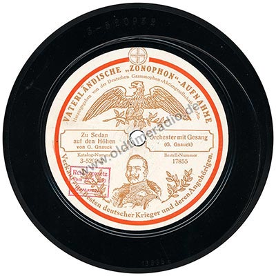 Bemerkungen zu Erscheinungsjahr: Die "Deutsche Grammophon" hat "Zonophon"-Schallplatten nur 1918 hergestellt, danach Aufgabe der Marke "Zonophon"