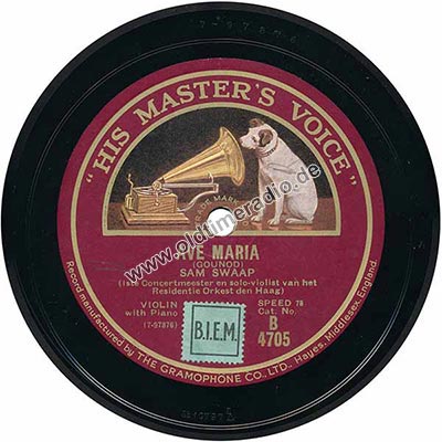 Weitere Bemerkungen auf Etikett (außer Titel): VIOLIN with Piano, Record manufactured by THE Gramophone Co., LTD., Hayes . Middlesex. England.