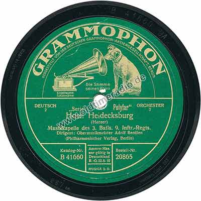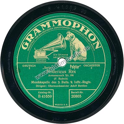 Weitere Bemerkungen auf Etikett (außer Titel): Die Stimme seines Herrn, eingetragene Schutzmarke, 2, Ammre-Mke. Nur gültig in Deutschland R.-G. 22.5.10, MUSICA G.D.